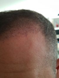 postupně vlasy vypadávají jak mě bylo řečeno. Na foto je krásně vidět co vše bylo transplantováno. Průběh by měl být takový, že za tento nadcházející měsíc by měli vypadat zbylé vlasy. takže za další měsíc opět přidám aktuální fotky. Kůže na místech, kde proběhla transplantace je lehce růžová. V místech kde docházelo k odebrání již není nic poznat.