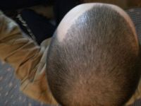 Zdravim som tu zas pridavam dalsiu fotku stvrty den po transplantacii kutov necitim nikde ziadnu bolest transplantovane vlasy si denne kazde 2 hodiny ostrekujem ostrekovacom co mi dali a od zajtra si uz budem moc jemne umyt celu hlavu.